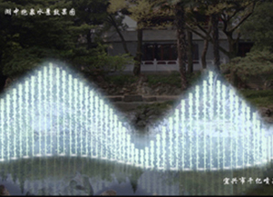 音樂(lè)噴泉由音樂(lè)節(jié)奏控制。當(dāng)音樂(lè)調(diào)高時(shí),噴泉將水柱濺到高處,空氣中都充滿(mǎn)了水霧。低音調(diào)時(shí),噴泉濺水柱的水位低。如果音樂(lè)突然停止,在水柱的空氣中會(huì)劇烈跌落,濺起水,弄濕衣服的旁觀者,但人們?nèi)匀徊辉鸽x開(kāi)。