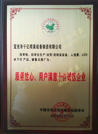 熱烈祝賀我公司榮獲“質(zhì)量放心、用戶滿意十佳誠(chéng)信企業(yè)”稱號(hào)。