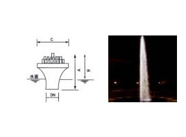 中心直上噴頭又稱中心水柱是在同一個配水箱上安裝許多萬向直流噴嘴,當這些噴嘴規(guī)格相同時,噴出的水姿雄壯筆直;當這些噴嘴規(guī)格不完全相同時,大小噴嘴布設得當,噴出的水姿粗壯有力,層次分明、主題突出,是大型噴泉的主要噴頭。