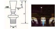 扁嘴噴頭噴出的水形美觀,適用于各種場合的噴水池中,扁嘴噴頭裝有球形接頭,可作垂直方向和傾斜15度安裝。
